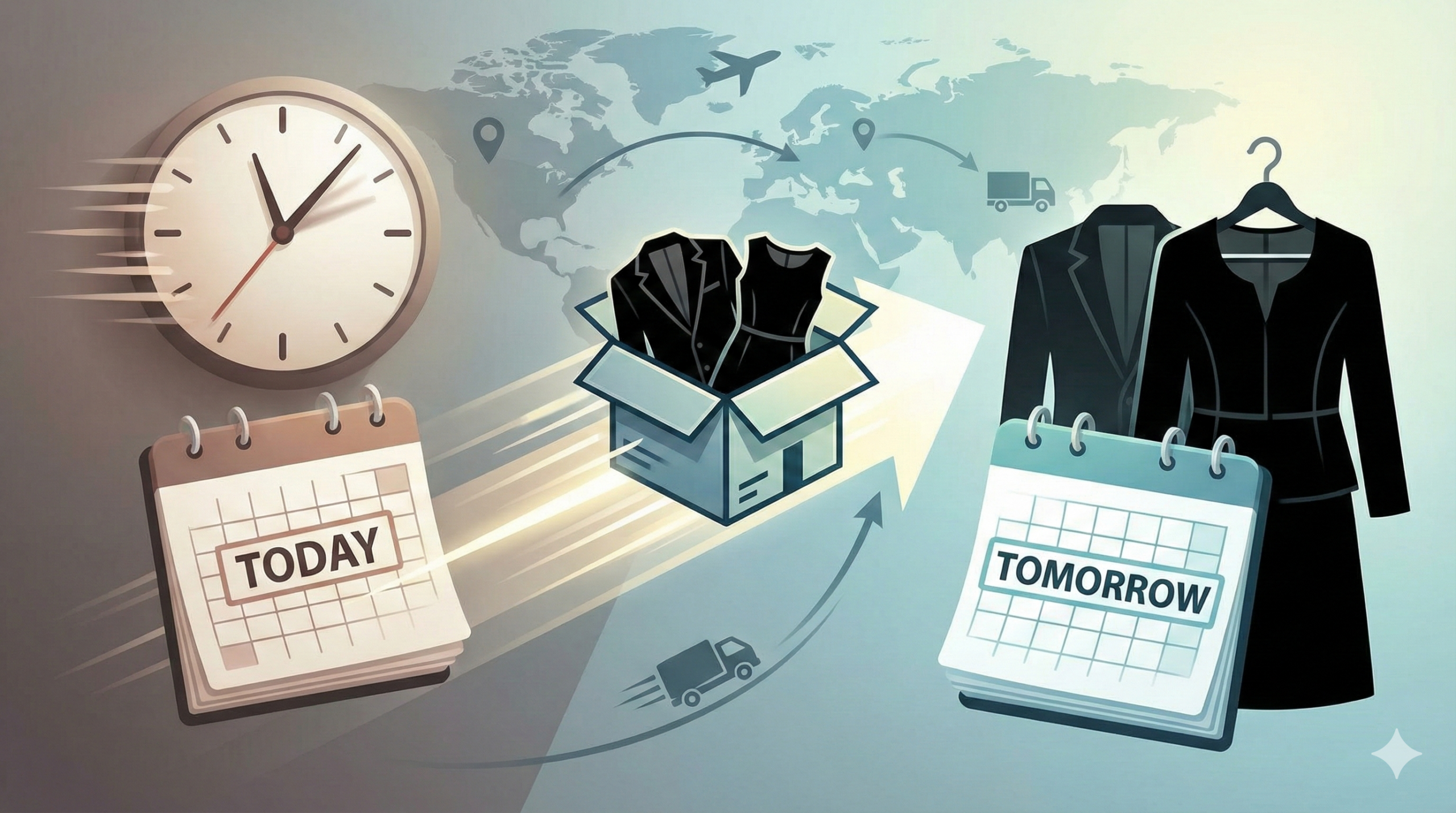 このページでは、今日これから喪服を手配して、どこまでなら間に合う可能性があるのか、エリア別・注文時間別のお届け目安、即日対応が難しいケースと、そのときの現実的な代替案を、できるだけ具体的に整理しています。