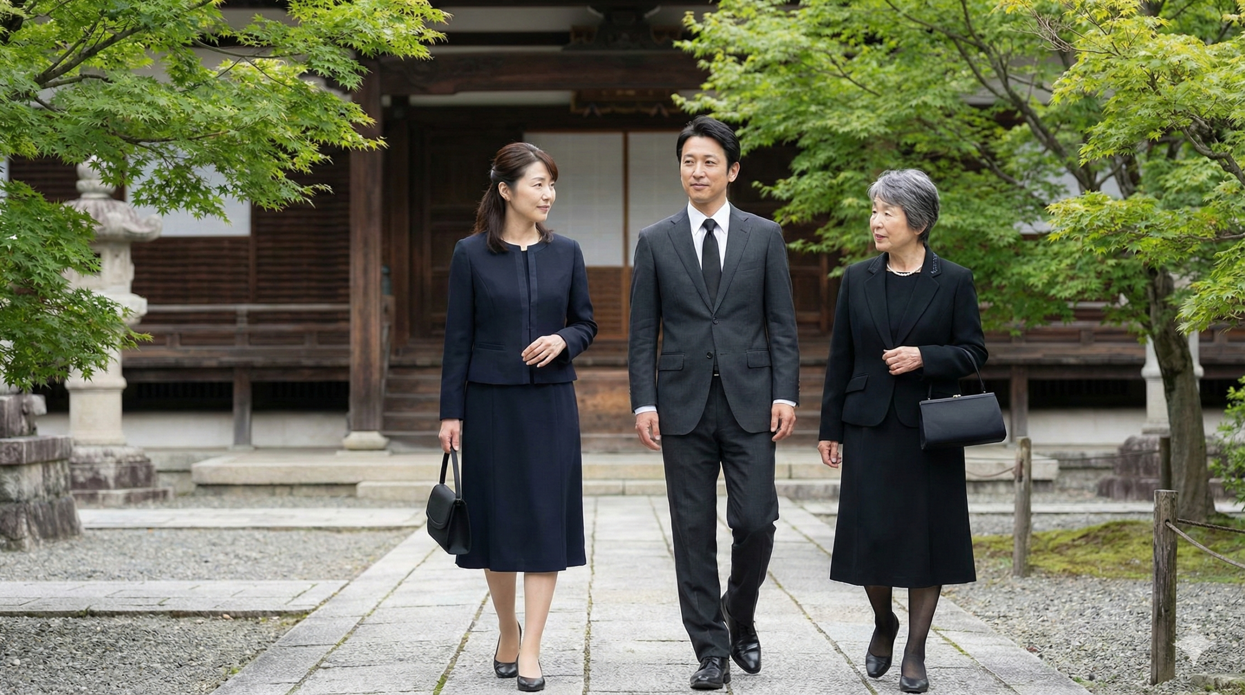 久しぶりの法事で、手持ちが入るか不安な場合。体型変化、産後、更年期などでサイズが読めない場合。夏や冬で着回しが難しい、汗や防寒問題がある場合。平服指定だけれど、親族としてきちんと見せたい場合。会食があるか参列者が多い法事で、失礼が怖い場合。喪服を買うほどではないが、きちんとした一着が必要な場合。靴、バッグ、数珠など小物もまとめて整えたい場合です。